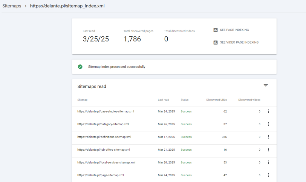 • na koniec bardzo ważna zasada, bez której cały ten proces nie ma sensu – zgłoszenie mapy strony do Google Search Console. W ten sposób roboty wyszukiwarki zauważą ją i prawdopodobnie przejdą szybko do jej indeksacji. W panelu możesz sprawdzić czy mapa witryny jest poprawna oraz ile adresów URL zostało dobrze zaindeksowanych.